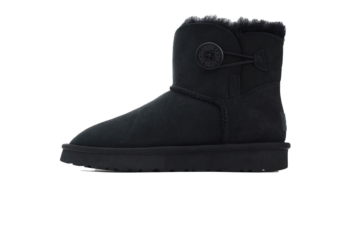 UGG Wooden buckle mid-tube black UGG plus velvet warm snow boots UGG Bailey Mini Bailey Button