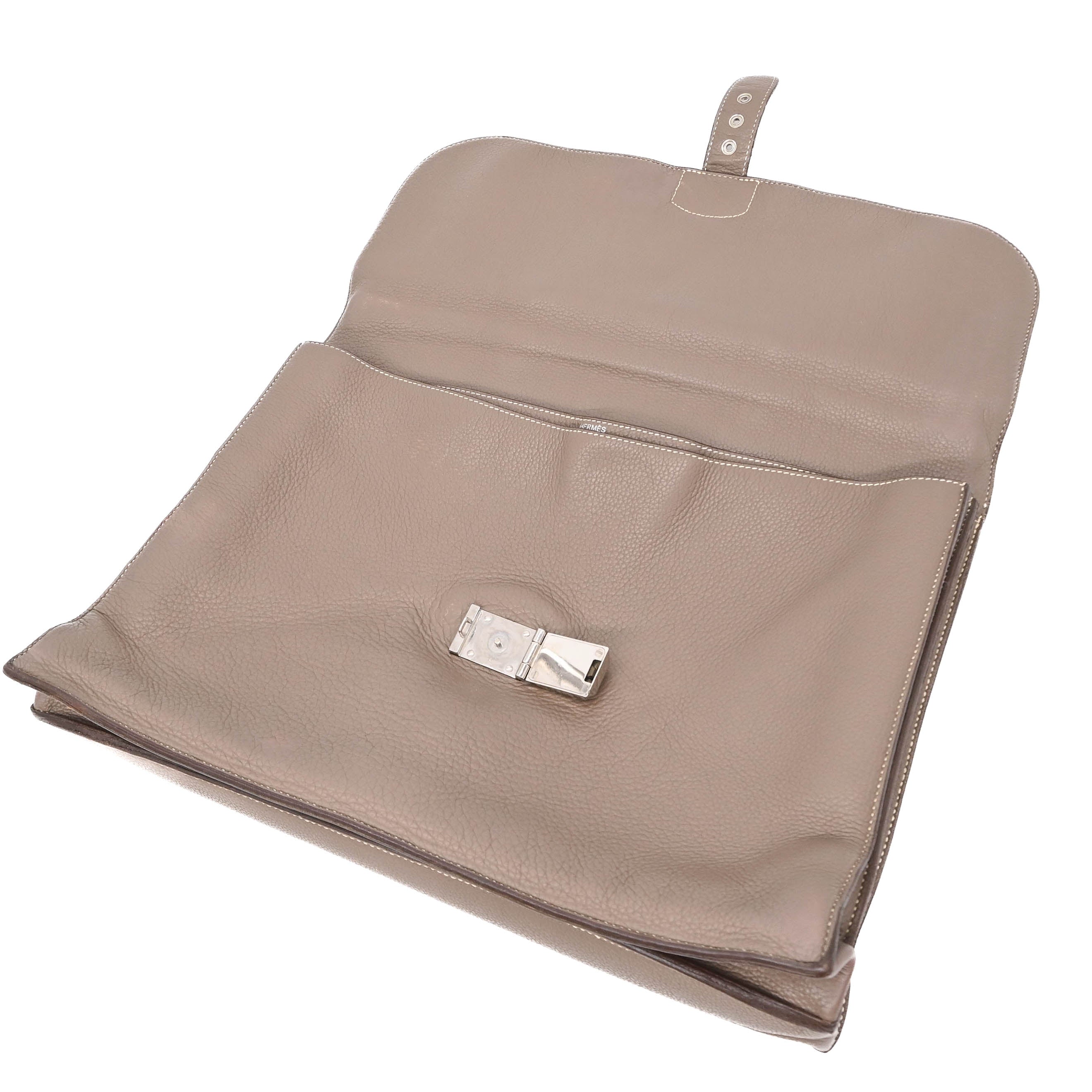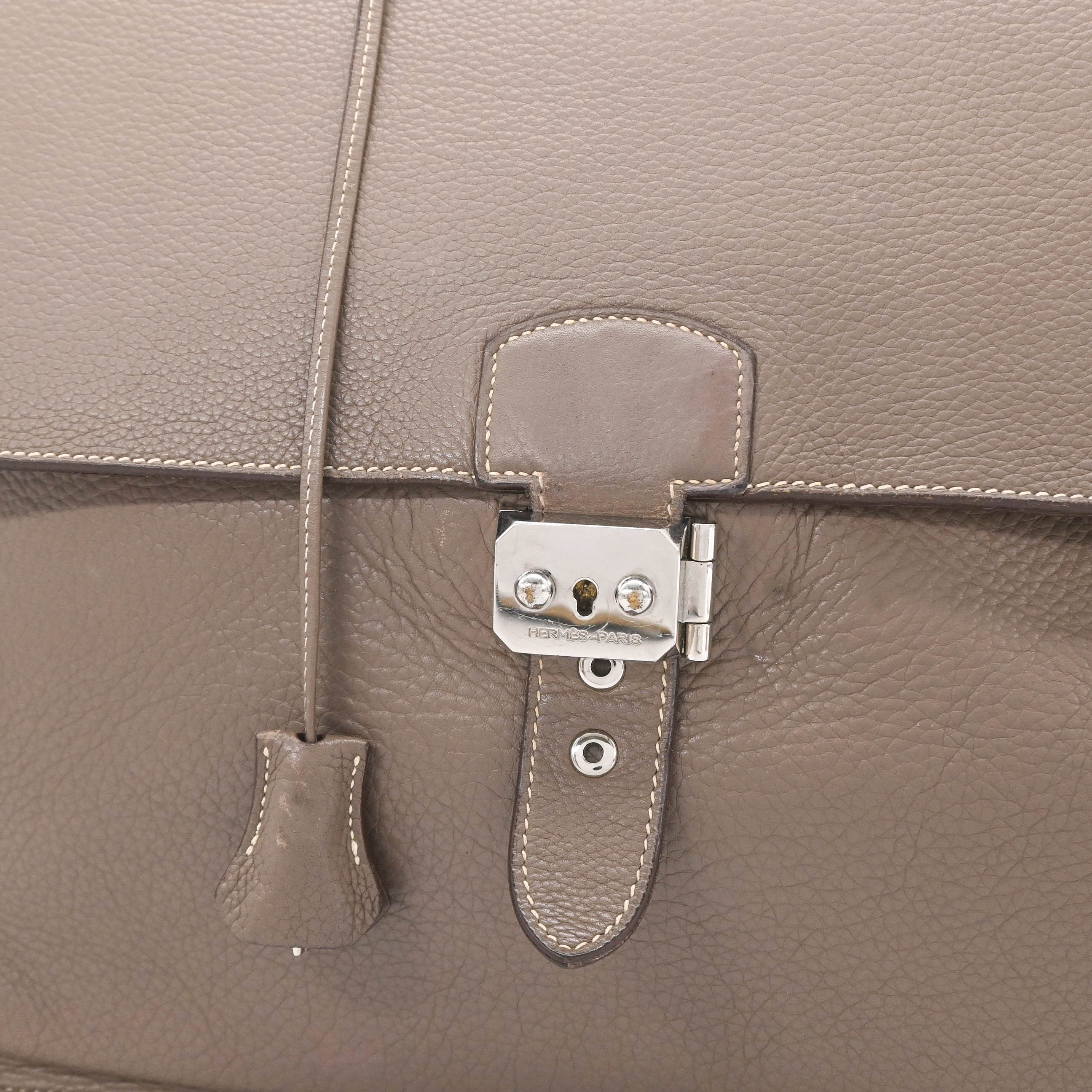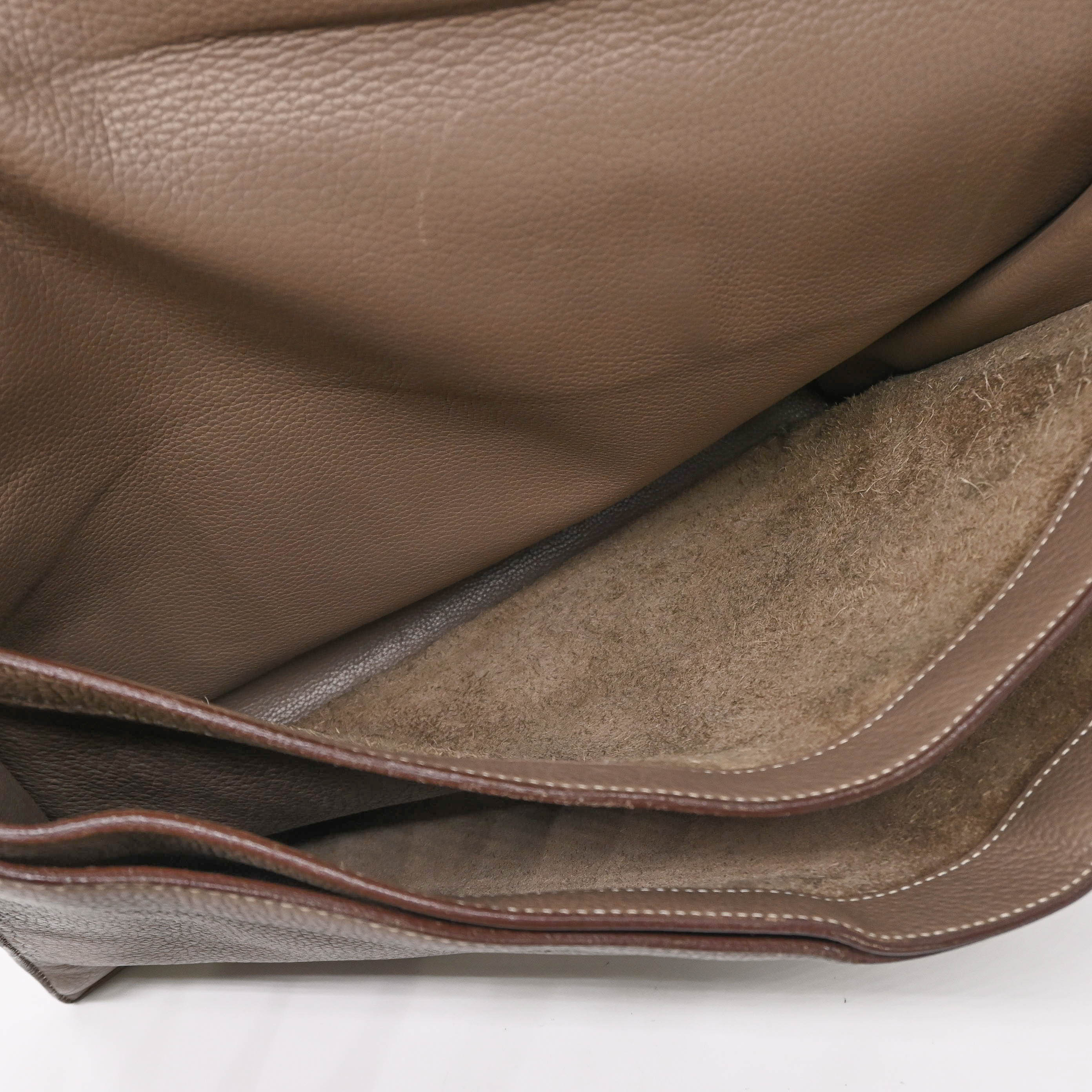HERMES Sac a Depeche 38 Business Briefcase, Taurillon Clemence Leather, Etoupe Leather