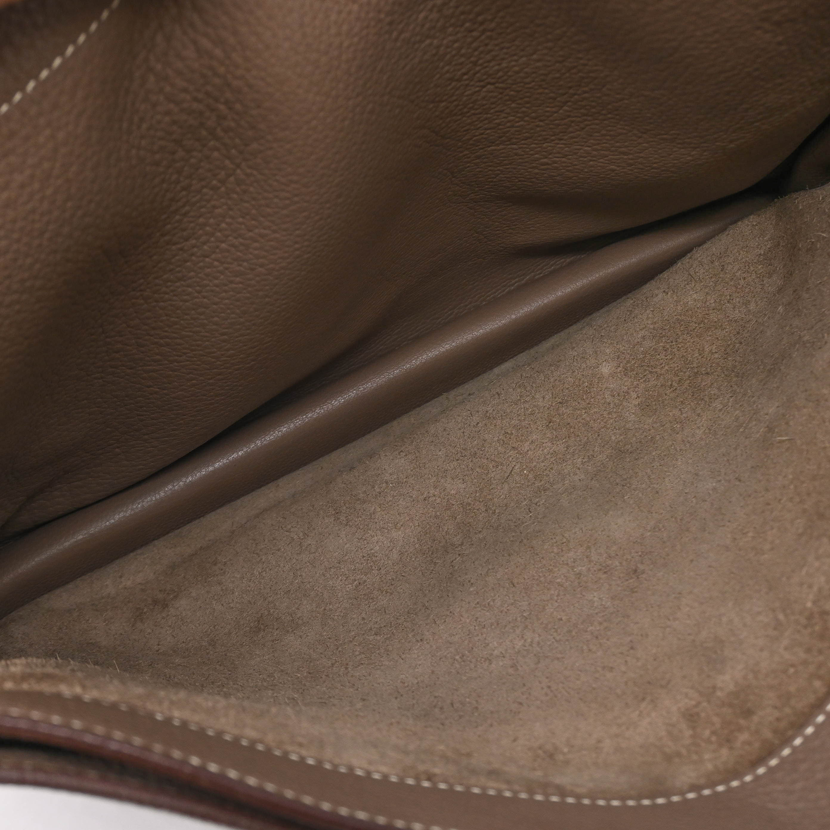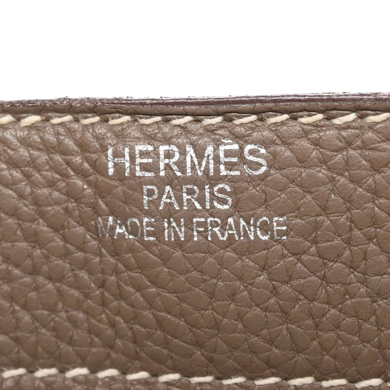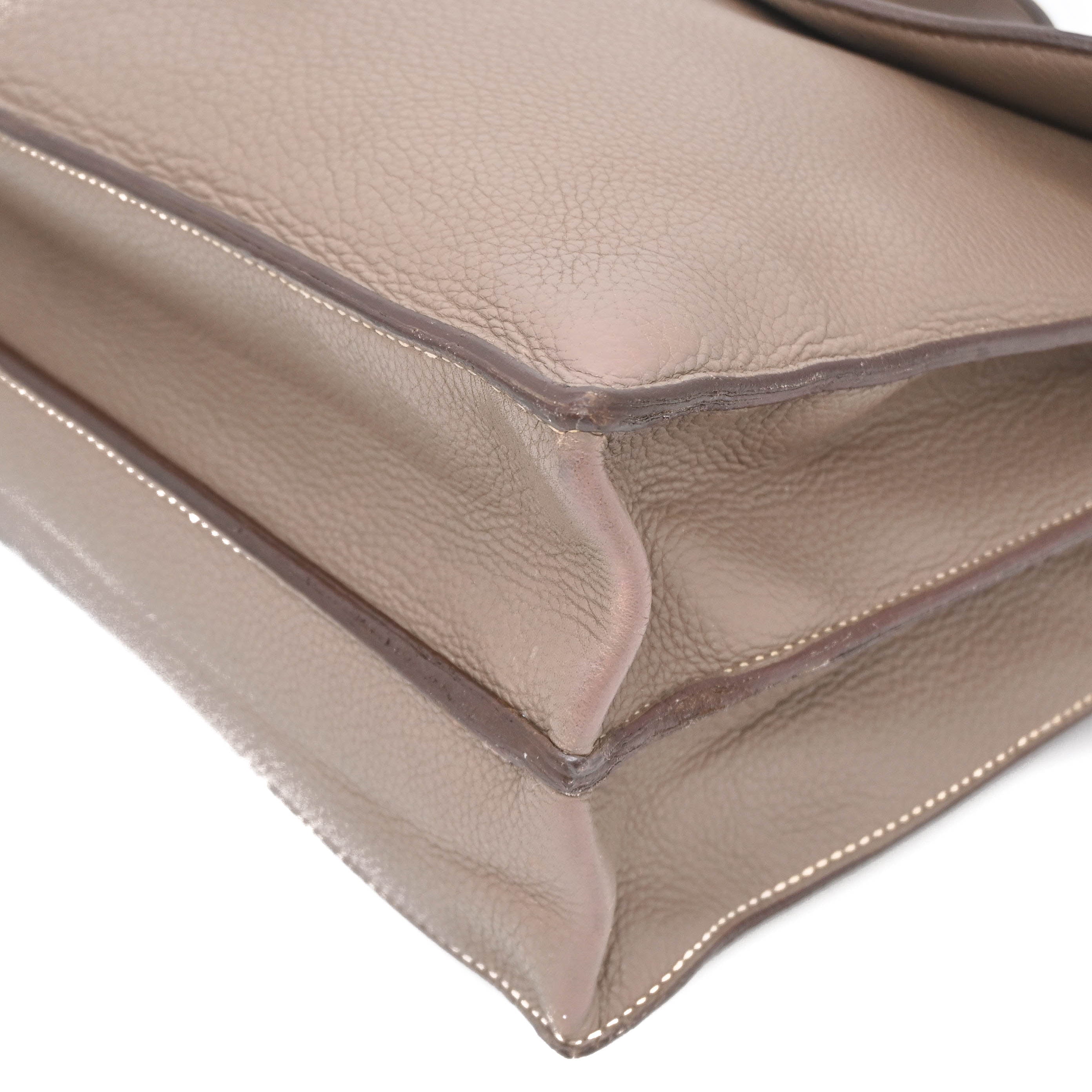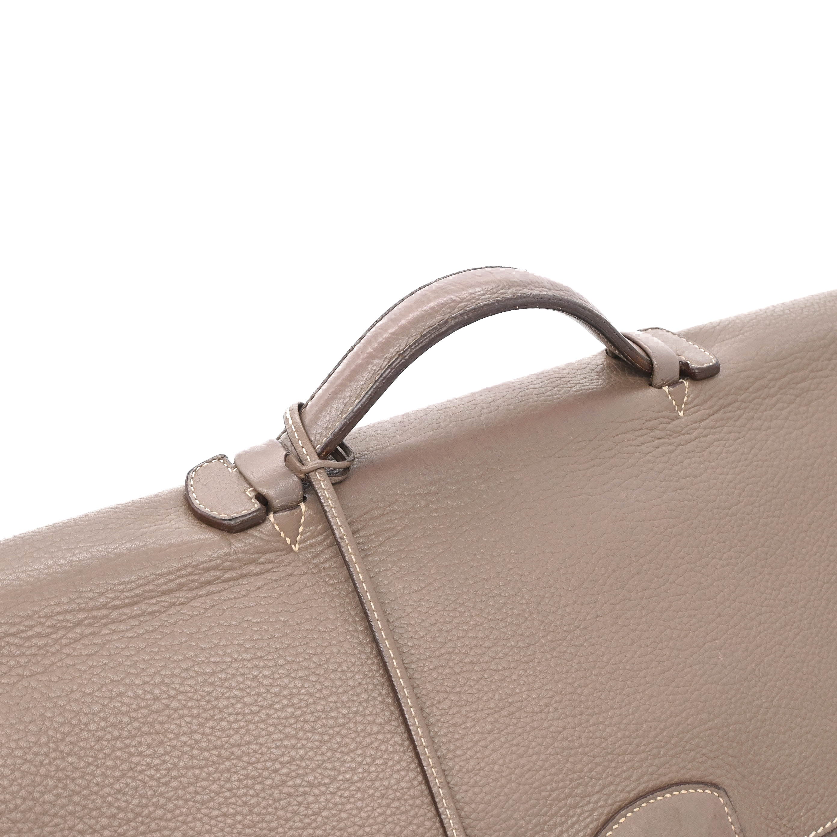 HERMES Sac a Depeche 38 Business Briefcase, Taurillon Clemence Leather, Etoupe Leather