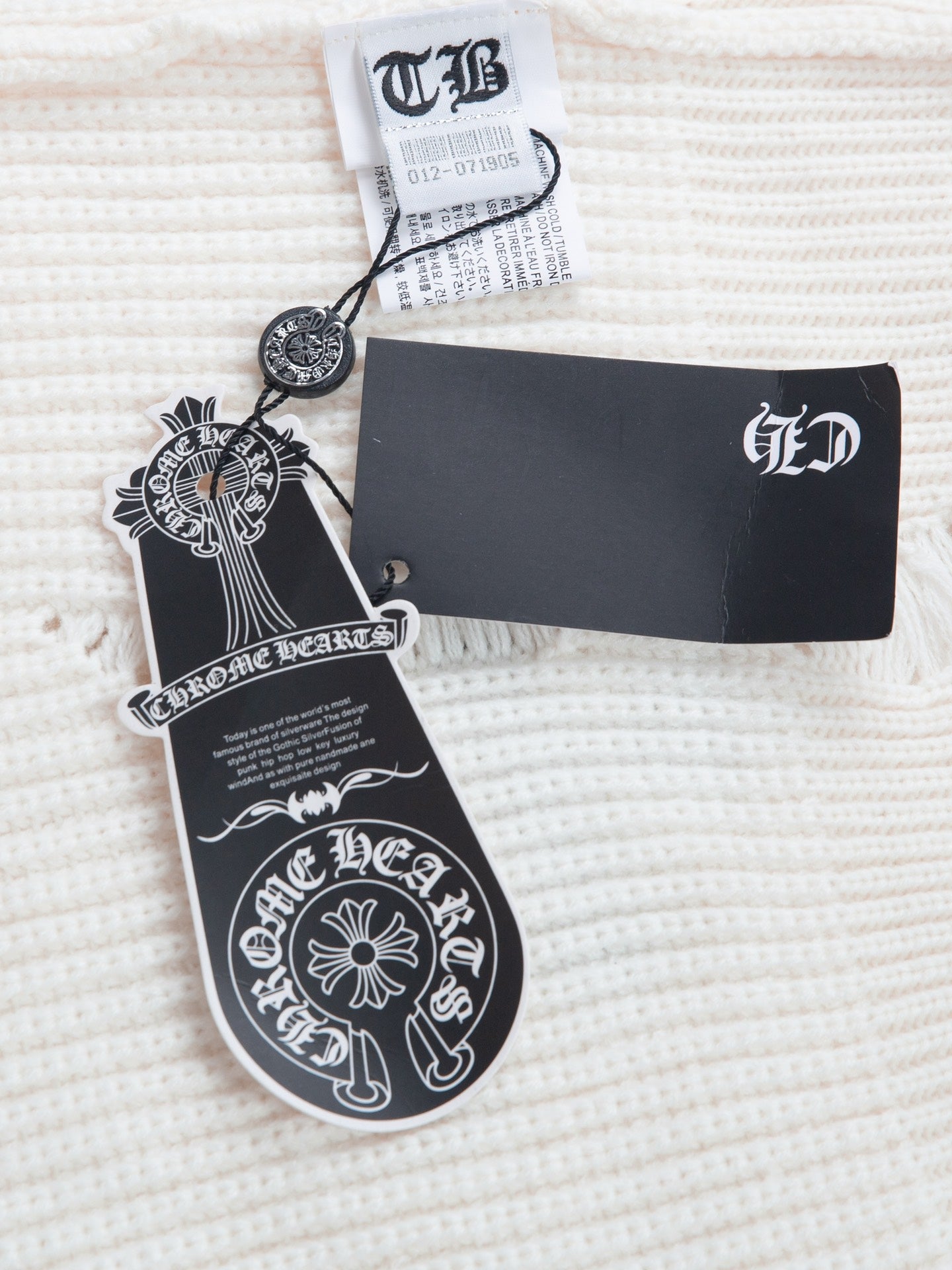 - Leather appliqué or patch accents, often with Chrome Hearts' signature gothic designs