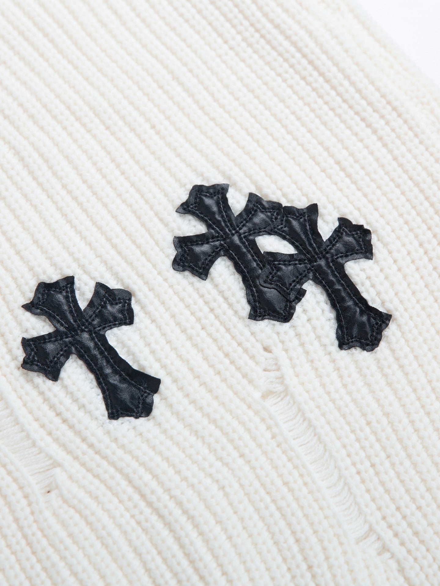 Chrome Hearts Leather Thickened White Sweater