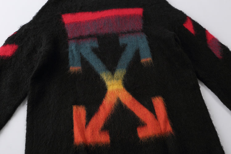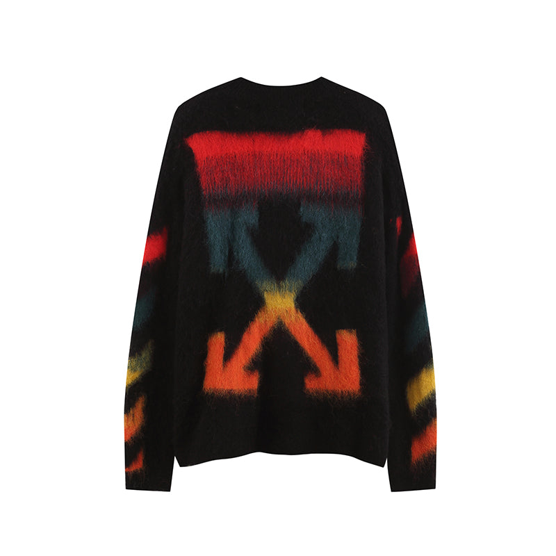 Add a vibrant touch to your streetwear collection with the Off-White Arrow Logo Multicolor Jumper. Crafted from high-quality, soft-knit fabric, this eye-catching piece features Off-White’s signature arrow logo rendered in a dynamic multicolor design, making it a standout addition to any wardrobe. The bold, colorful pattern combined with the iconic branding creates a perfect blend of contemporary style and luxury streetwear. Comfortable and versatile, this jumper is ideal for making a statement while staying cozy.