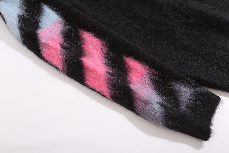 Add a touch of subtle elegance to your wardrobe with the Off-White Brushed Mohair Black Rosa Knitwear. Crafted from a luxurious blend of brushed mohair, this knitwear combines softness, warmth, and a refined aesthetic. The understated black base is complemented by delicate pink rosa accents or detailing, embodying Off-White’s signature blend of streetwear and high fashion. Perfect for layering or making a statement on its own, this piece offers both comfort and style in one sophisticated package.
