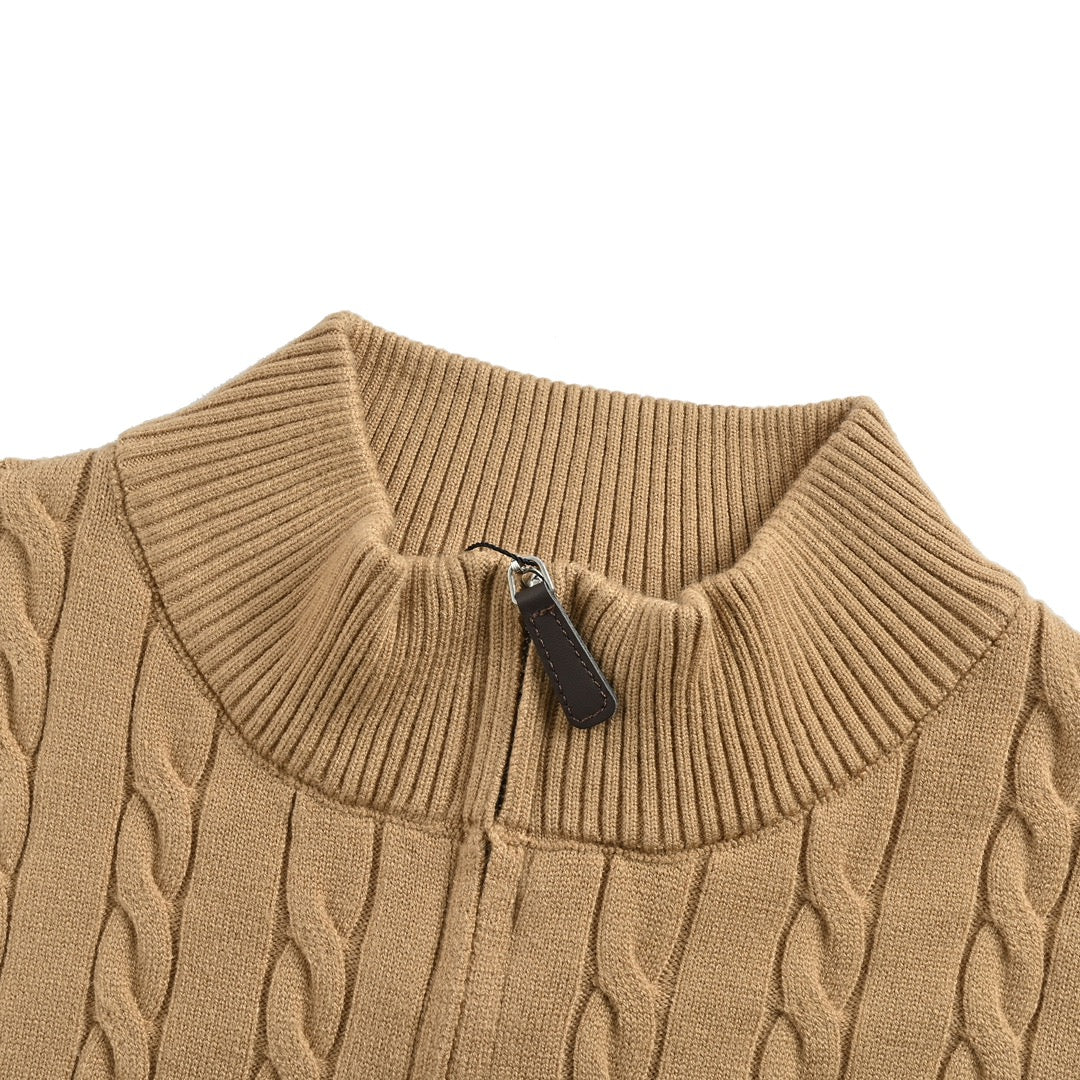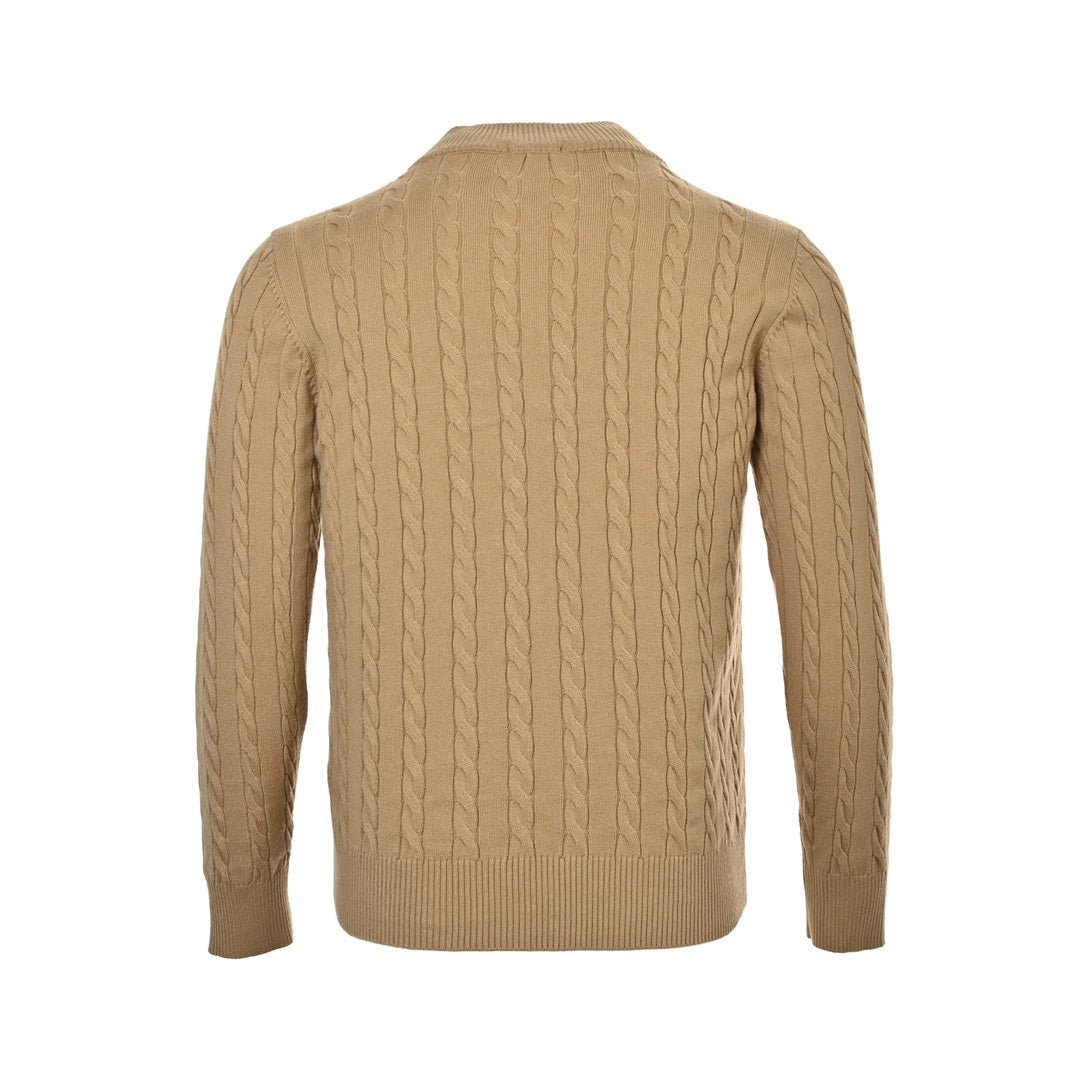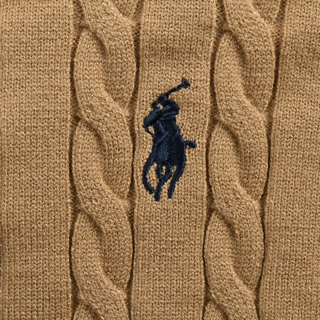 The Ralph Lauren Brown Classic Cable Knit Half-Zip Sweater is a timeless, versatile piece that adds warmth and texture to any wardrobe. Its rich brown hue ensures it pairs easily with various outfits, making it a perfect choice for fall and winter styling.