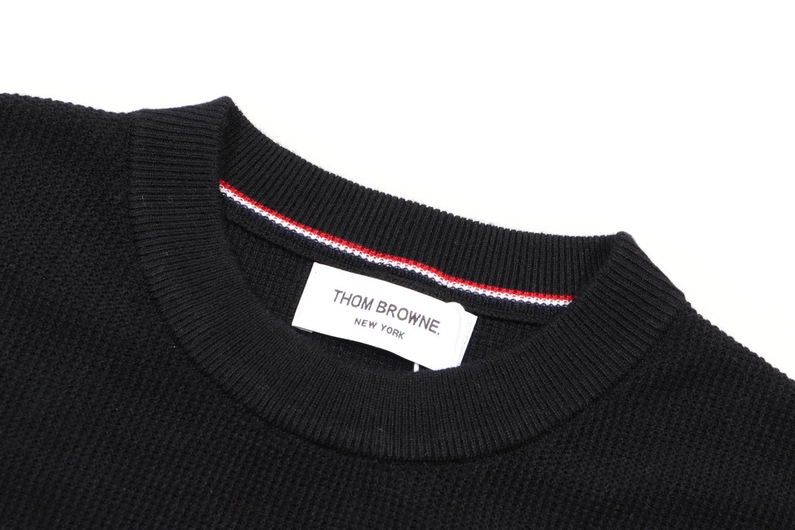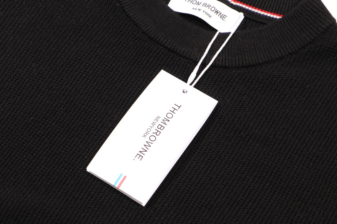 • thom browne Autumn and Winter Round Neck Wool Pullover, Heavy Craft Sweater