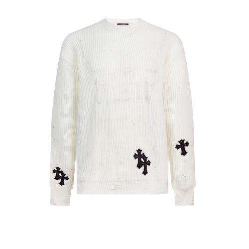 Chrome hearts leather thickened white sweater
