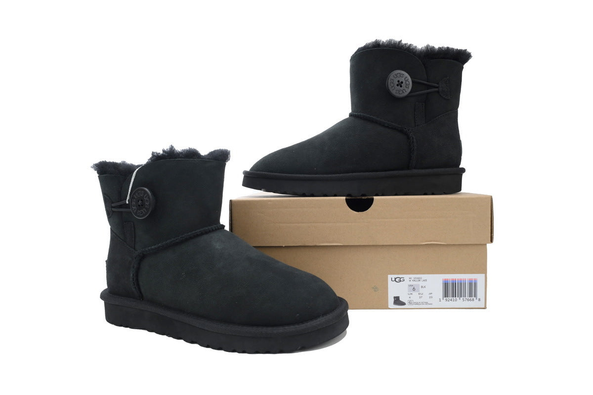 Elevate your winter wardrobe with the UGG Wooden Buckle Mid-Tube Black Snow Boots. Crafted with a sleek black exterior and accented with stylish wooden buckles, these boots combine rugged durability with sophisticated design. The plush velvet lining ensures maximum warmth and comfort during cold days, while the mid-tube height provides versatile styling options. Whether you're heading out for a winter walk or running errands, these UGG Bailey Mini Bailey Button boots deliver both fashion and function.